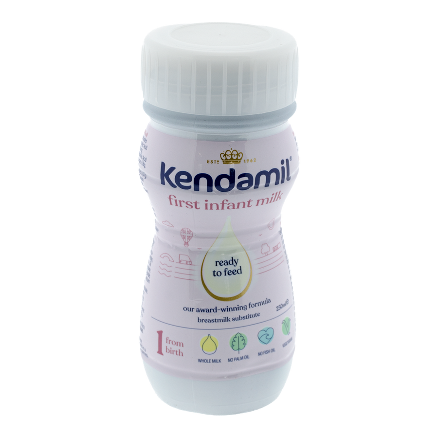 نقدم لكم Kendamil Classic Ready to Feed Stage 1 - الخيار الغذائي المثالي لطفلكم حديث الولادة، متوفر الآن في زجاجة سعة 250 مل. صُنع Kendamil Classic بحب في قلب منطقة البحيرات الخلابة في المملكة المتحدة، ويوفر مزايا الحليب البقري الكامل الدسم مباشرة في زجاجة طفلكم، مما يضمن تغذية لطيفة ومغذية مع كل رشفة.